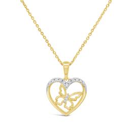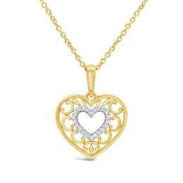 Sterling Silver Yellow Gold Plated Diamond Heart Mom and Child Pendant