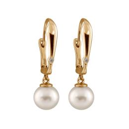 14K White Gold 8-8.5mm Round Freshwater Pearl & Diamond Earrings