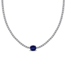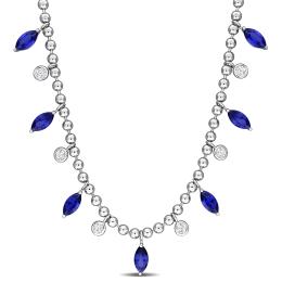 Julianna B Sterling Silver Created Blue and White Sapphire 17" Bead Necklace