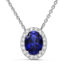 Sterling Silver Created Emerald & Created White Sapphire 18" Pendant