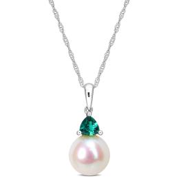 Julianna B 10K White Gold Created Emerald & 8-8.5MM Pearl Pendant