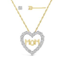 Lab Grown 0.10CTW Mom Diamond Pendant & Earring Set in 18K Yellow Gold Vermeil