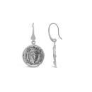 These sterling silver earrings feature a stylish coin drop design, offering a timeless and elegant look. The detailed coin pendant adds a touch of sophistication, making them a versatile accessory for both casual and formal occasions.