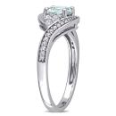 Add this glittering Aquamarine, White Topaz and Diamond Swirl Ring to your jewelry collection today and look stunning. Crafted in lustrous white gold, it features a round-cut, prong-set aquamarine gemstone (6 x 6mm) at the center with six round-cut, prong-set white topaz gemstones and 22 round-cut, pave-set diamonds (G-H, I2-I3) resting on the sides and along the band. Enhanced with a high polish finish, this gemstone and diamond ring makes the perfect addition to any jewelry collection. This fabulous gemstone and diamond design can be worn seamlessly with your other rings and will coordinate beautifully with your favorite accessories.