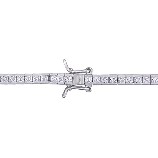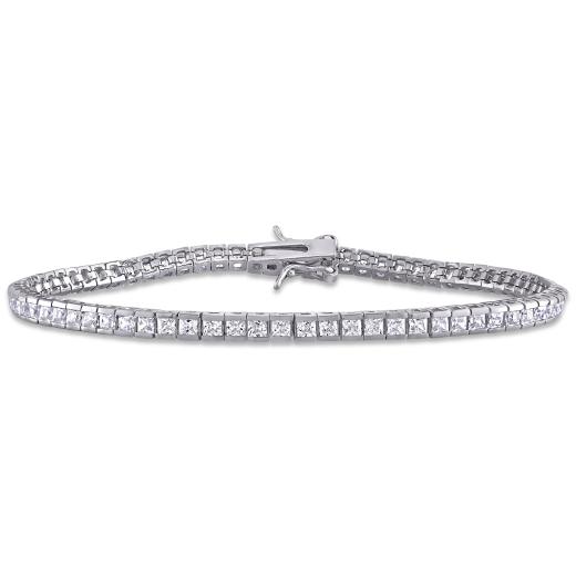 This luxurious cubic zirconia tennis bracelet is crafted in luminous sterling silver and features 73 square-cut cubic zirconia gemstones in a classic 7inch tennis bracelet design, perfect for all occasions. Polished to a brilliant shine, this shimmering tennis bracelet is a timeless addition to any jewellery collection. Coordinate this bold and opulent tennis bracelet with any attire and add a touch of elegance and class to your look.