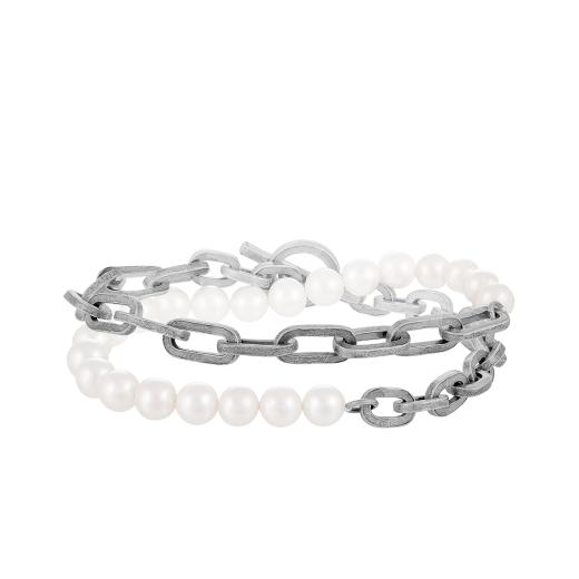 Large 8-9MM freshwater pearls mixed with chunky sterling silver links, create an elegant bracelet with a feminine feel yet with a masculine look. Complete your look with this showstopping piece