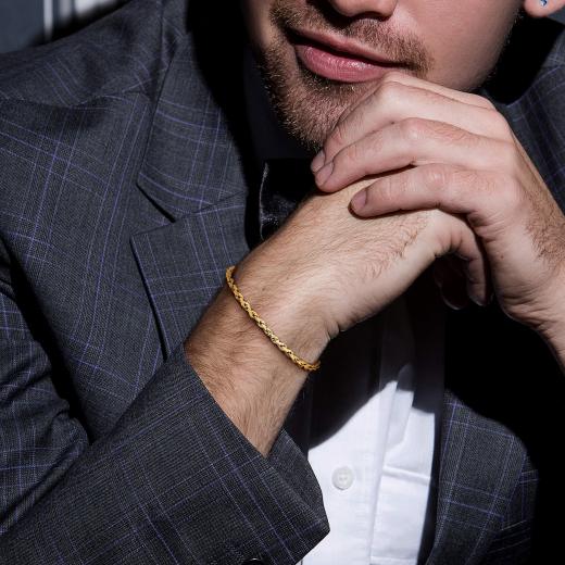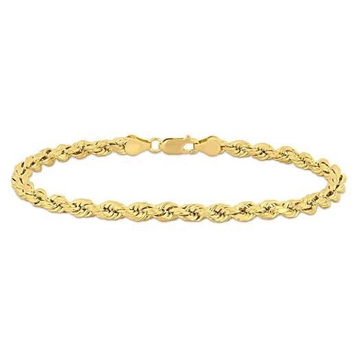 Elegance never goes out of style, and neither will this Rope Chain Men's Bracelet. Mounted in lustrous yellow gold, it features a 5mm wide twisted rope chain. Enhanced with a high polish finish, this alluring gold bracelet measures 9-inches in length and secures with a lobster clasp. Pair this fabulous chain bracelet with any outfit for a handsome look.