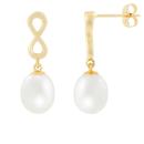 These modern yet classic infinity earrings are crafted in lustrous 10K yellow gold  and each set with a gorgeous 7-8mm freshwater pearl.  Polished to a brilliant shine, these stunning earrings are  sure to make a standout addition to any jewellery collection.
