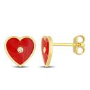 These pretty heart enamel stud earrings are crafted in lustrous yellow plated sterling silver and feature two round-cut, bezel-set, created white sapphire gemstones studded at the center of the red enamel. Win Mom's heart with a perfect birthday or Mother's Day gift when you present her with these heart red enamel earrings.