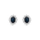 These elegant earrings feature stunning blue sapphires at their center, surrounded by a halo of sparkling white zircons, all set in sterling silver. The vibrant contrast of the deep blue and brilliant white stones creates a timeless and sophisticated look, perfect for adding a touch of luxury to any occasion.