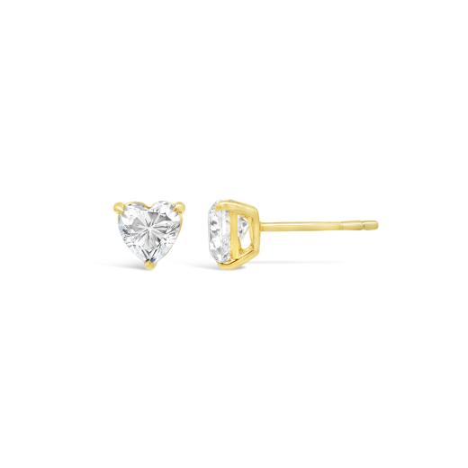 Celebrate love and sparkle with these elegant heart cut diamond studs. Each earring showcases a lab grown diamond weighing 0.50 CT, for a combined total of 1.00 CTW. Set in a secure three-prong design crafted from warm 10K yellow gold, these earrings offer a sleek, polished look with radiant brilliance.