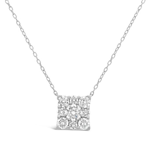 Brilliant and contemporary, these New Brilliance stud earrings feature square‑shaped diamond clusters crafted from lab grown diamonds totaling 1.00 CTW. Each stud is designed with multiple round brilliant diamonds arranged to create the look of a larger single stone, offering exceptional sparkle and a modern, structured silhouette. Set in sleek sterling silver with secure post‑back closures, these earrings deliver both comfort and eye‑catching shine.