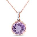 This lovely necklace features a round-cut amethyst and round white diamonds set in 10-karat rose gold. This glistening pendant is hung on a rope chain and is secured with a spring ring clasp.