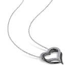 This lovely necklace feature a gorgeous sterling silver interlocking double heart pendant. The first heart is studded with brilliant created white sapphires and the second heart features black rhodium plating.