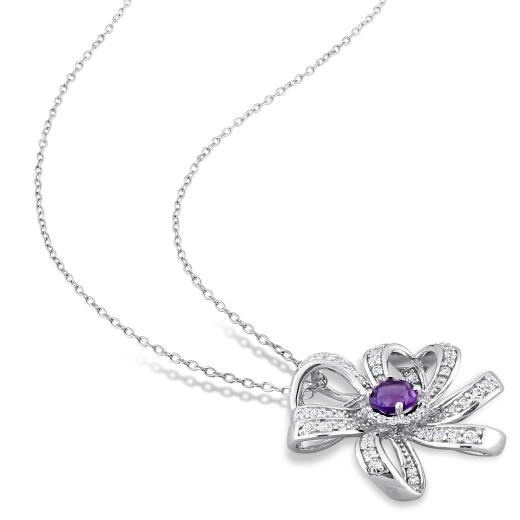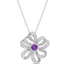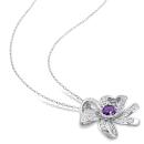 This charming floral pendant is crafted in luminous sterling silver. This exquisite pendant features a prong-set, African amethyst gemstone at the centre surrounded by 16 prong-set white topaz gemstones. The petal like motifs showcases 47 pave-set, white topaz gemstones. Polished to brilliance, this ravishing pendant is suspended on an 18-inch round cable chain. Wear a halter neck dress and witness the magic of this eye-catching pendant.