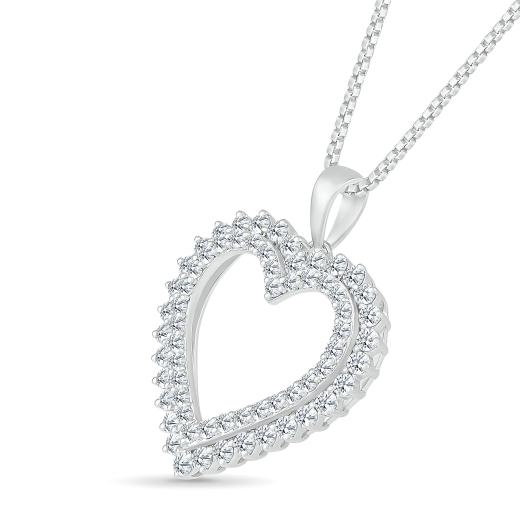 This pendant is a breathtaking expression of affection, featuring a heart-shaped design crafted in lustrous white gold. The impressive 0.95 carats of diamonds create a stunning display, adding an abundance of timeless beauty to the piece. The intricate and detailed design makes it an ideal accessory for special occasions, making a bold statement of love and sophistication.