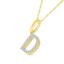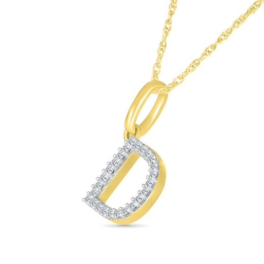 This pendant showcases the letter "D" crafted in 10K yellow gold, accented with sparkling diamonds for a touch of elegance and shine. The combination of warm gold and radiant diamonds creates a sophisticated and personal accessory.