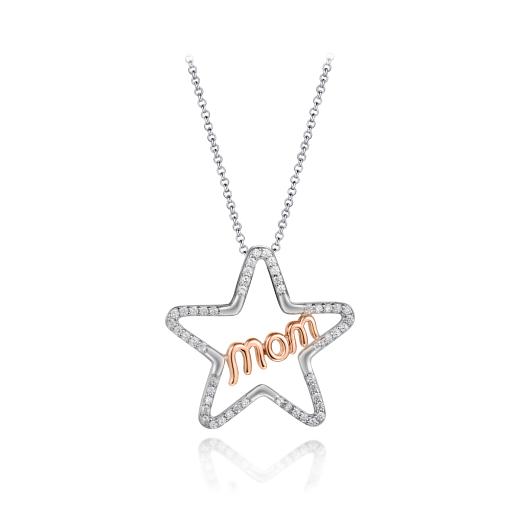 Show Mom she’ll always be a star with this rose plated sterling silver pendant. Featuring MOM, delicately written and accented with dazzling cubic zirconia's. This pendant will ensure MOM knows just how much you love her.