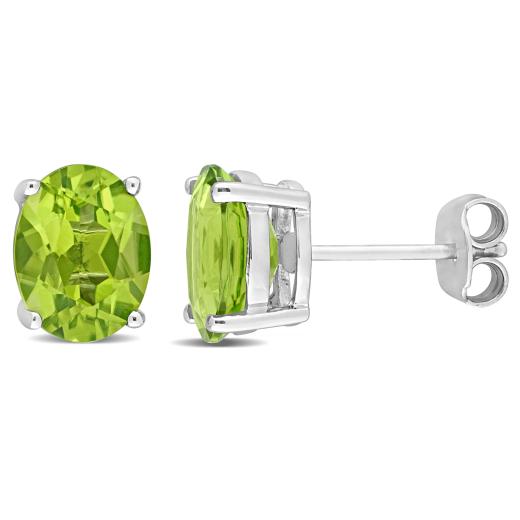 Celebrate the big day with this charming Peridot Solitaire Pendant with Chain. Crafted in luminous sterling silver, this glamorous pendant features an oval-cut, 4 prong-set peridot gemstone (9x7mm) in a classic basket setting. Polished to a brilliant shine, this enchanting pendant is suspended on an 18-inch round cable chain secured with a spring ring clasp. This charming pendant is the perfect combination of class and elegance.