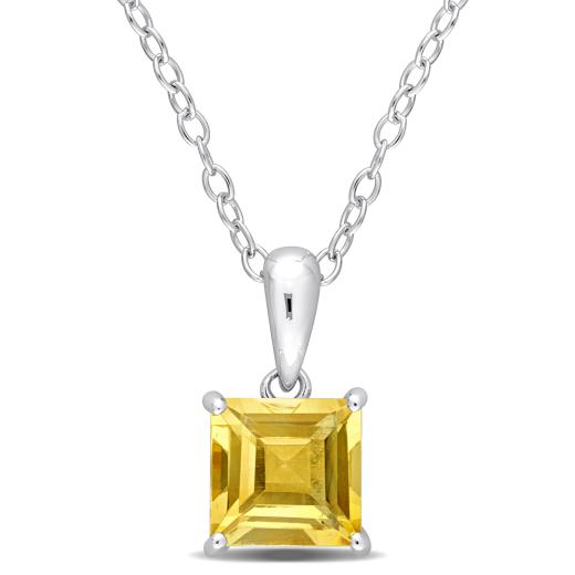 Go out of your way and impress her with this classy Citrine Solitaire Pendant with Chain. Crafted in sparkling sterling silver, this glamorous pendant features a princess-cut, 4 prong-set citrine gemstone (6x6mm) in a classic basket setting. Polished to a brilliant shine, this charming pendant is suspended on an 18-inch round cable chain secured with a spring ring clasp. This flawless pendant will always remind her of your unconditional commitment.