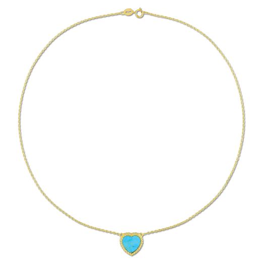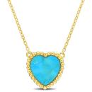 Add a pop of colour and elegance to your attire with our 5ct TGW Heart Shape Created Turquoise Necklace with Beaded Halo in Yellow Plated Sterling Silver. This striking necklace features a heart-shaped created turquoise gemstone encircled by a beautiful beaded halo design. Crafted in lustrous yellow plated sterling silver, and complemented by a 17-inch chain, it's the perfect accessory to enhance your style and make a statement.