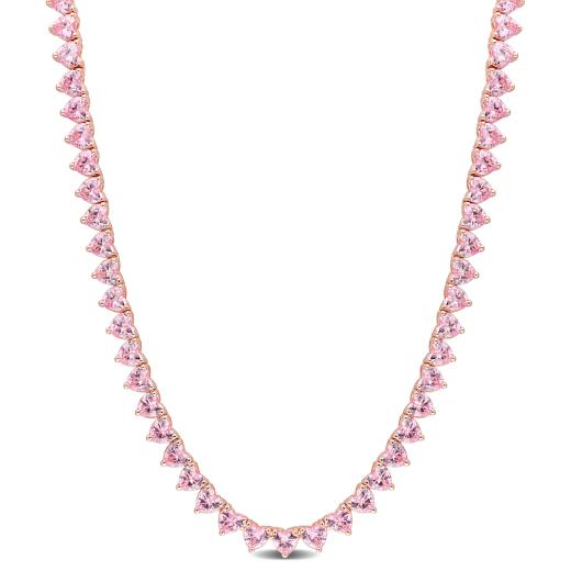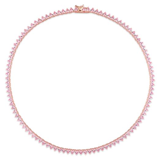 Make a bold and glamorous statement with this stunning Pink Cubic Zirconia Necklace. With its impressive 31.2 carats total gem weight (TGW), this necklace is sure to catch attention wherever you go.The necklace features exquisite pink cubic zirconia gemstones, meticulously cut into heart-shaped stones. The vibrant pink hue adds a touch of femininity and romance to the design. Each stone is expertly set in a secure tongue and groove clasp, ensuring durability and ease of wear.Crafted in silver rose, the necklace exudes elegance and sophistication. The timeless tennis necklace style with a length of 18.5 inches sits gracefully on the neckline, making it a versatile piece that can be worn for any occasion. It can be layered with other necklaces or worn alone as a statement piece.