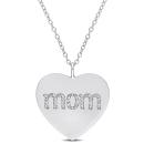 This heartfelt 1/10 CT TDW Diamond 'Mom' Engraved Heart Pendant with Chain in Sterling Silver, a touching symbol of maternal love and appreciation. Crafted with exquisite detail, this pendant features a delicate heart-shaped design adorned with shimmering diamond accents totaling 1/10 carat in weight. The sterling silver setting provides a timeless backdrop, while the engraved "Mom" inscription adds sentimental value and personal touch. Suspended from a matching chain, this pendant is a beautiful and meaningful accessory, perfect for expressing gratitude and affection for a cherished mother. Embrace the sentimentality and elegance of this Diamond 'Mom' Engraved Heart Pendant, destined to be treasured for years to come.