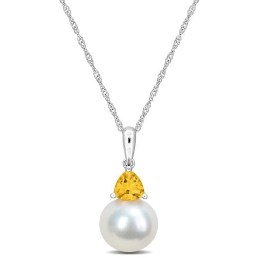 Julianna B 10K White Gold Citrine & 8-8.5MM Pearl Earrings