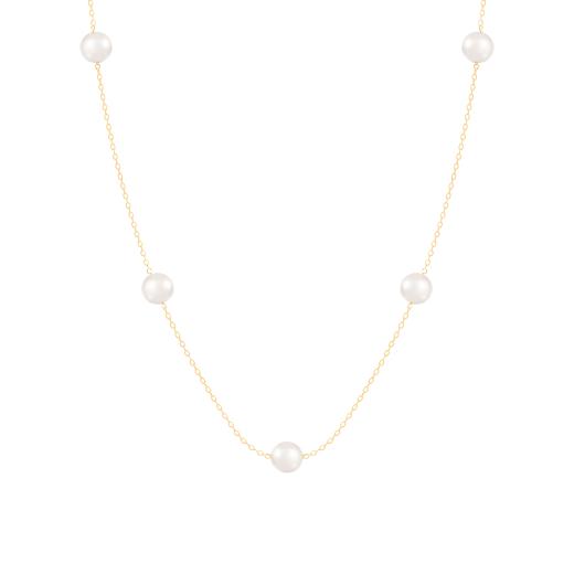 A graceful blend of classic charm and modern simplicity, this 14K yellow gold cable tin-cup necklace features 7mm freshwater pearls spaced with elegant precision. The cable chain adds a subtle texture that enhances the soft glow of each pearl, creating a look that’s effortlessly refined and endlessly versatile.