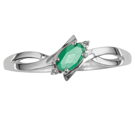 This modern twisted 10k white gold ring is sure to become a favourite item in your jewellery collection. This item is perfectly adorned with a genuine emerald, which is the birthstone for May, and accented by diamonds. It you are looking for something stunning, order this for yourself or someone you love today!