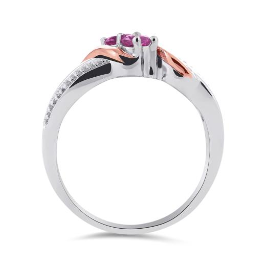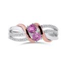 This classic fashion ring is perfect for any outfit. Designed in sleek sterling silver with rose gold accents this ring features two sparling created pink sapphires. Buy this amazing piece for yourself or for someone you love!