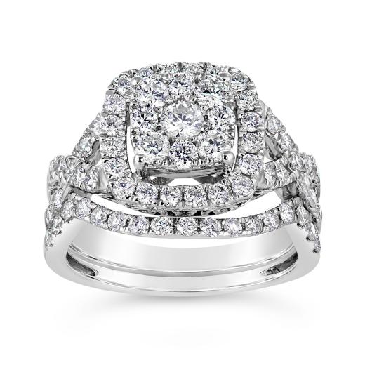 This diamond bridal set offers a stunning and elegant choice for engagement and wedding rings.  Its combination of white gold and sparkling diamonds creates a captivating and beautiful ensemble that celebrates love and commitment.