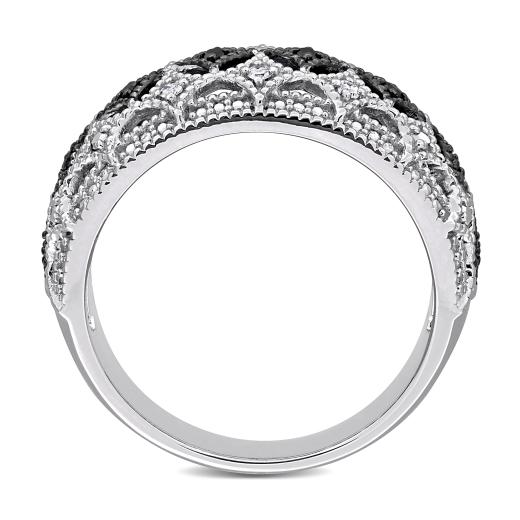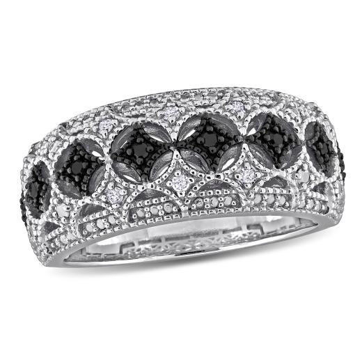Elevate your style with this charming 1/10 CT black and white diamond total weight fashion ring, beautifully crafted in silver and enhanced with black rhodium plating. The captivating contrast of dazzling white diamonds against the rich black diamonds creates a sophisticated and modern look. Ideal for everyday wear or special occasions, this ring adds a touch of elegance to any outfit. A perfect blend of contemporary flair and timeless appeal, making it a delightful addition to your jewelry collection.