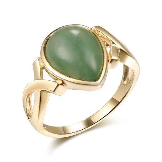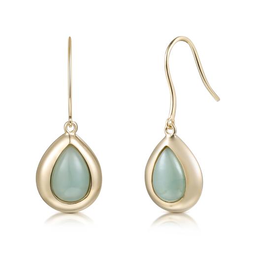10K Yellow Gold Pear Jade Drop Earrings