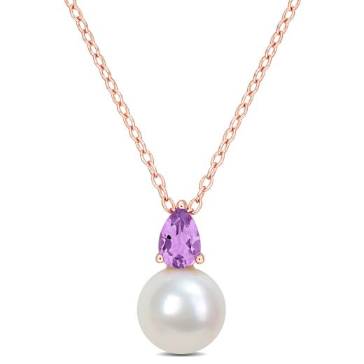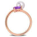 Grace your look with this amethyst and 6–6.5MM white freshwater cultured pearl fashion ring in pink silver. The soft violet hue of the amethyst beautifully complements the luminous freshwater pearl, all set in romantic pink-plated sterling silver—an elegant piece that adds a feminine touch to any outfit.